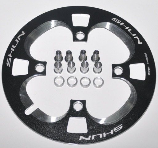 Защита передней звезды MTB guard, черная, размер 48Тх104 мм BCD, материал алюминий, толщина 3 мм, крепление в бонки.